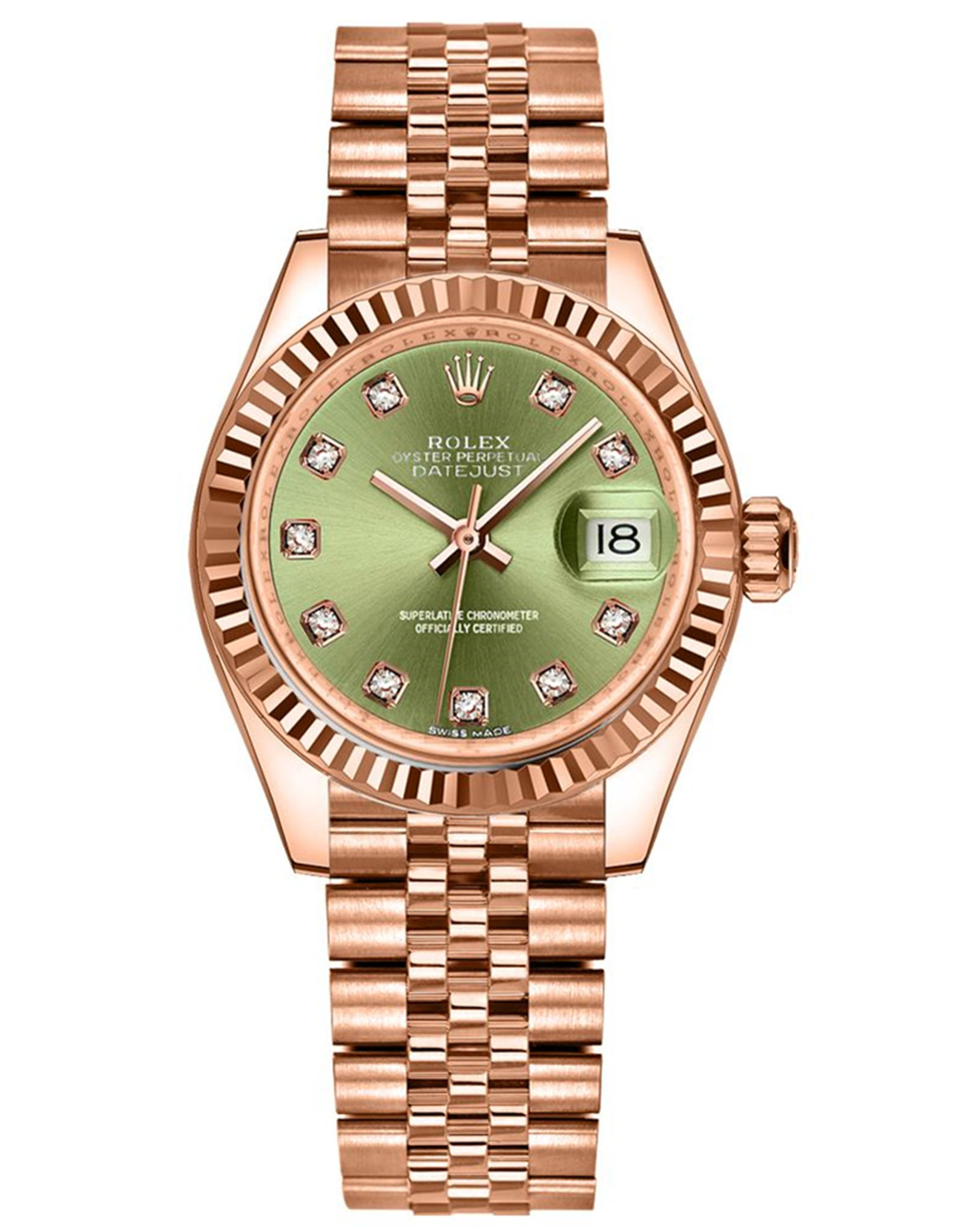 Replica Rolex Datejust Green Dial Fluted Bezel Women’s Watch 279175 28MM
