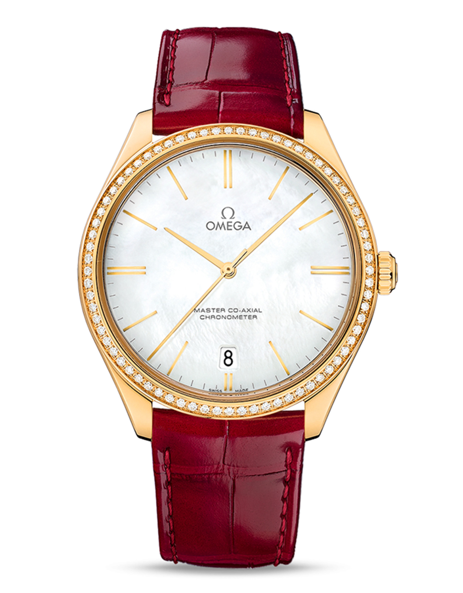 Replica Omega De Ville Mother of Pearl White Dial Diamonds Set on Bezel 432.58.40.21.05.004 40MM