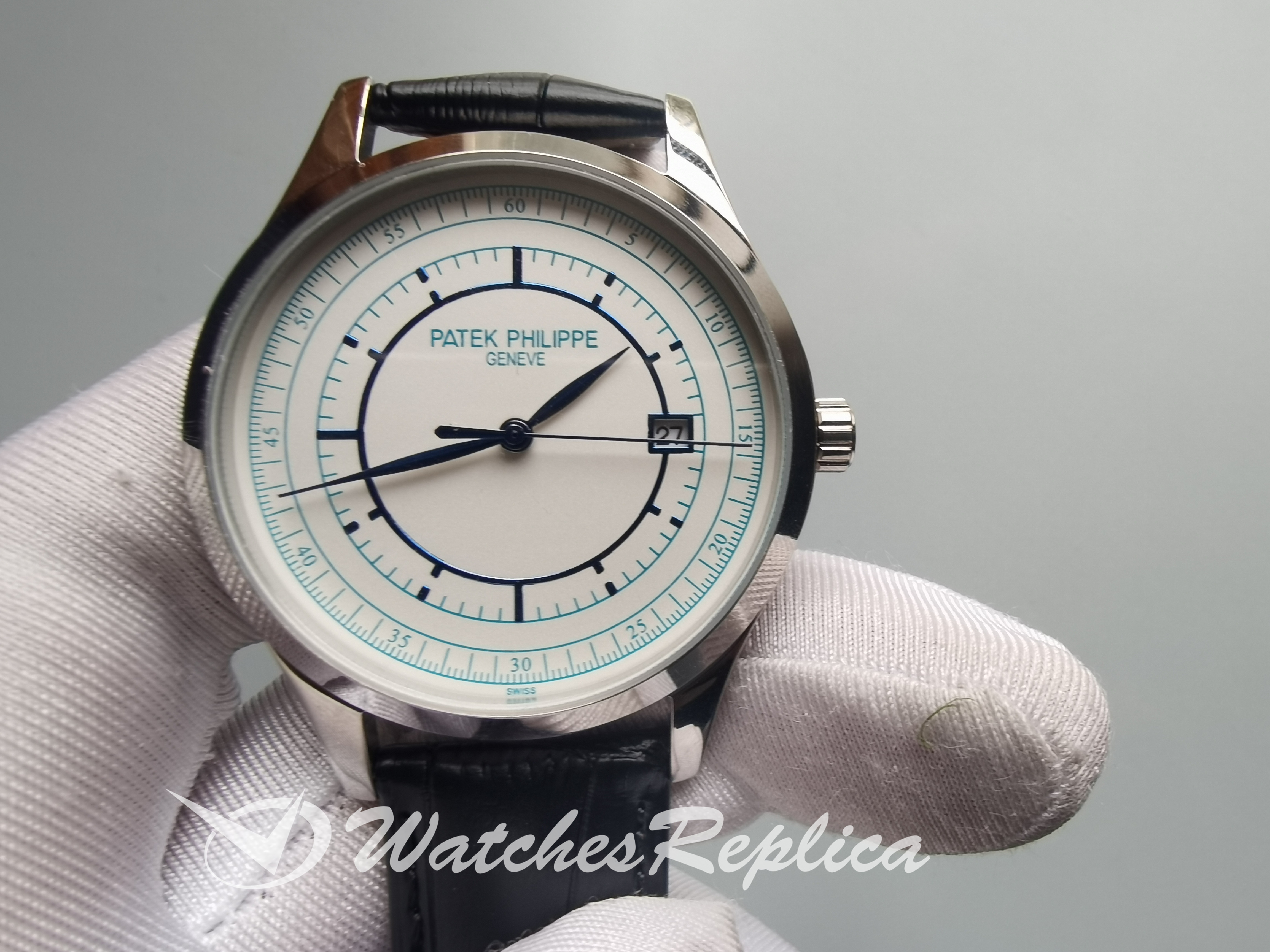 Replica Patek Philippe Calatrava Leather Strap Roman Markers 5119G 36MM