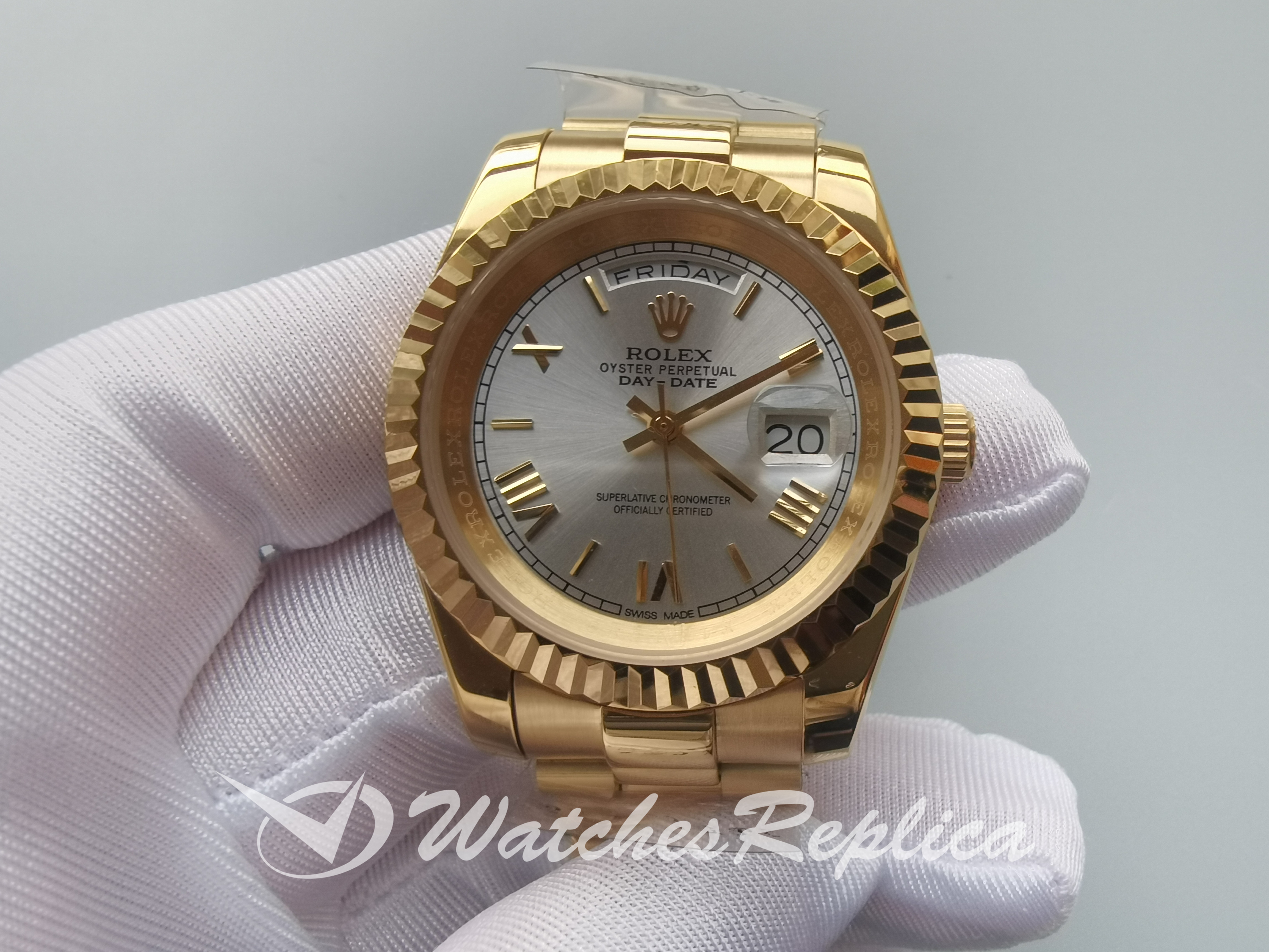 Replica Rolex Day Date Yellow Gold Dial Stick Markers 18038 36MM