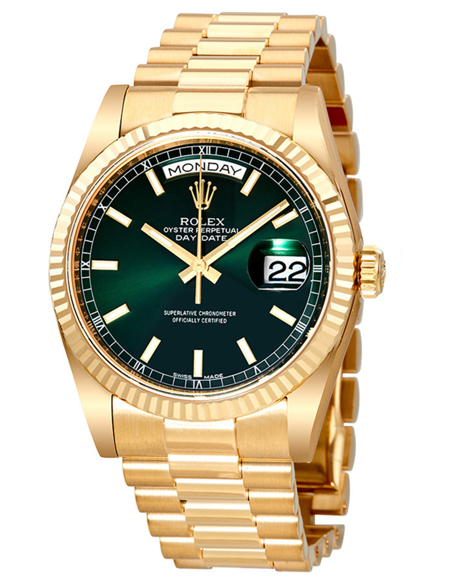 Replica Rolex Day Date Green Dial Automatic 18K Yellow Gold Automatic Watch 36 MM