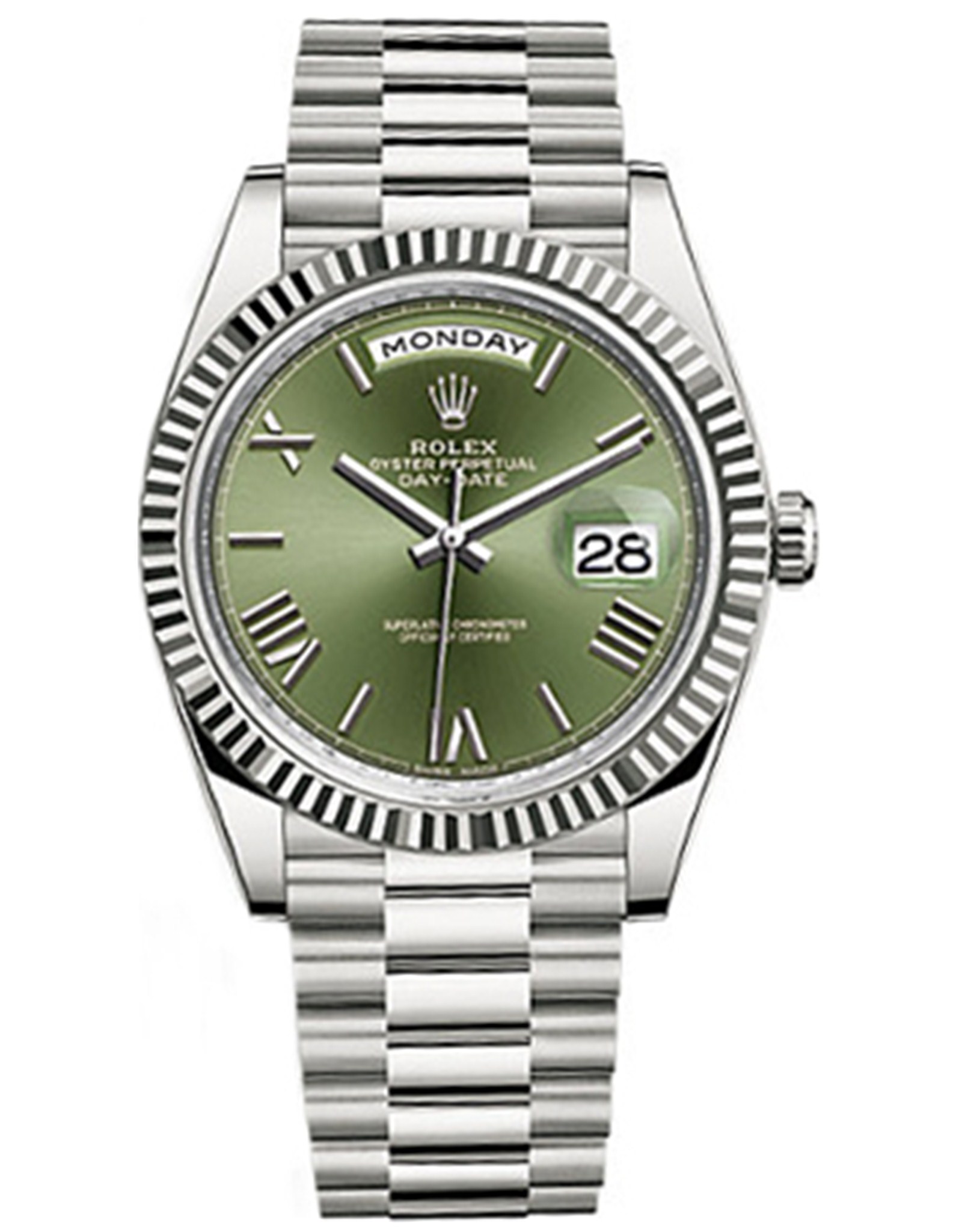 Replica Rolex Day Date Olive Green Dial White Gold Case 228239 40MM