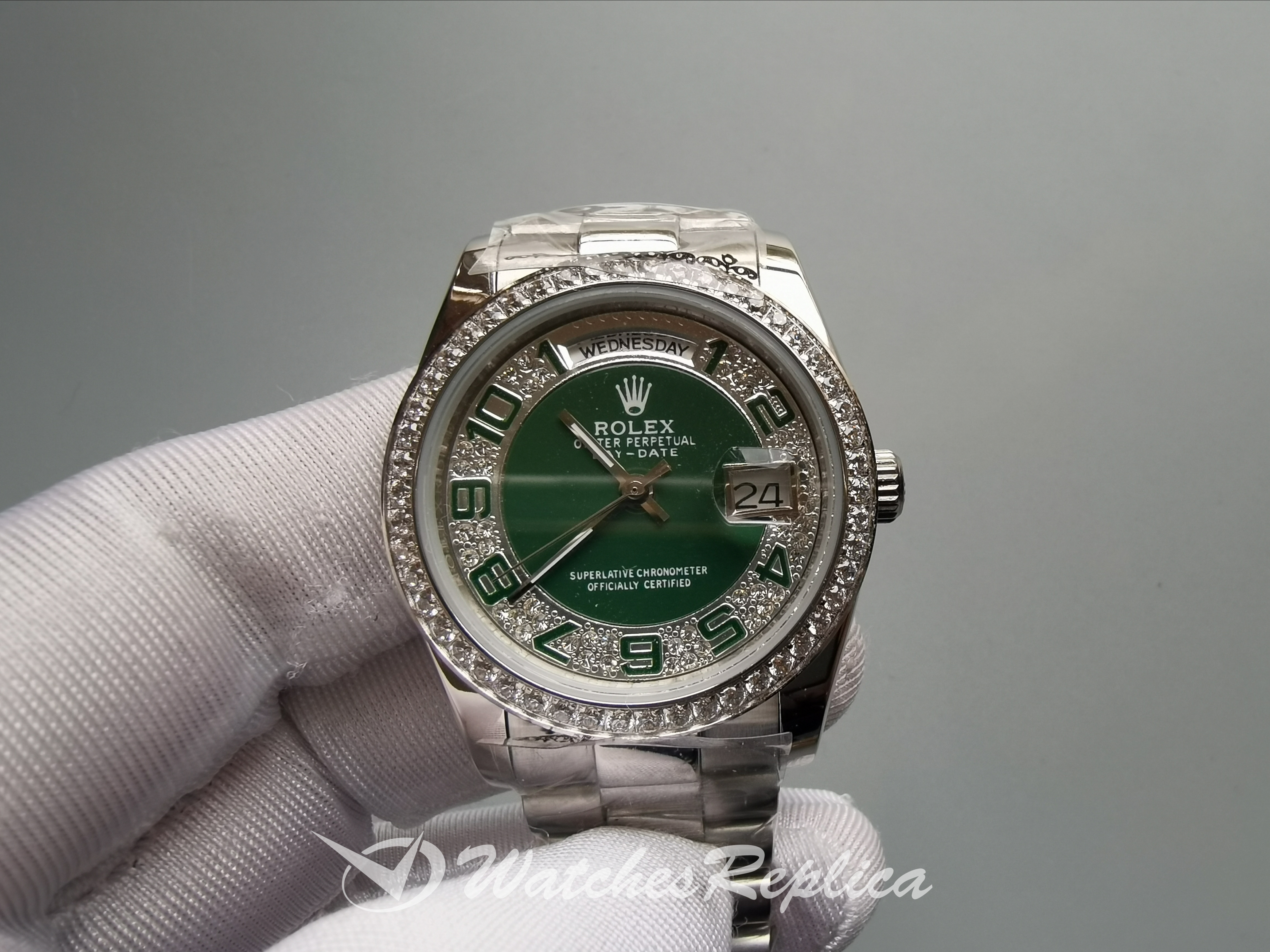 Rolex Day-date 118346 Steel With Diamonds Green Dial 36mm For Women Watch