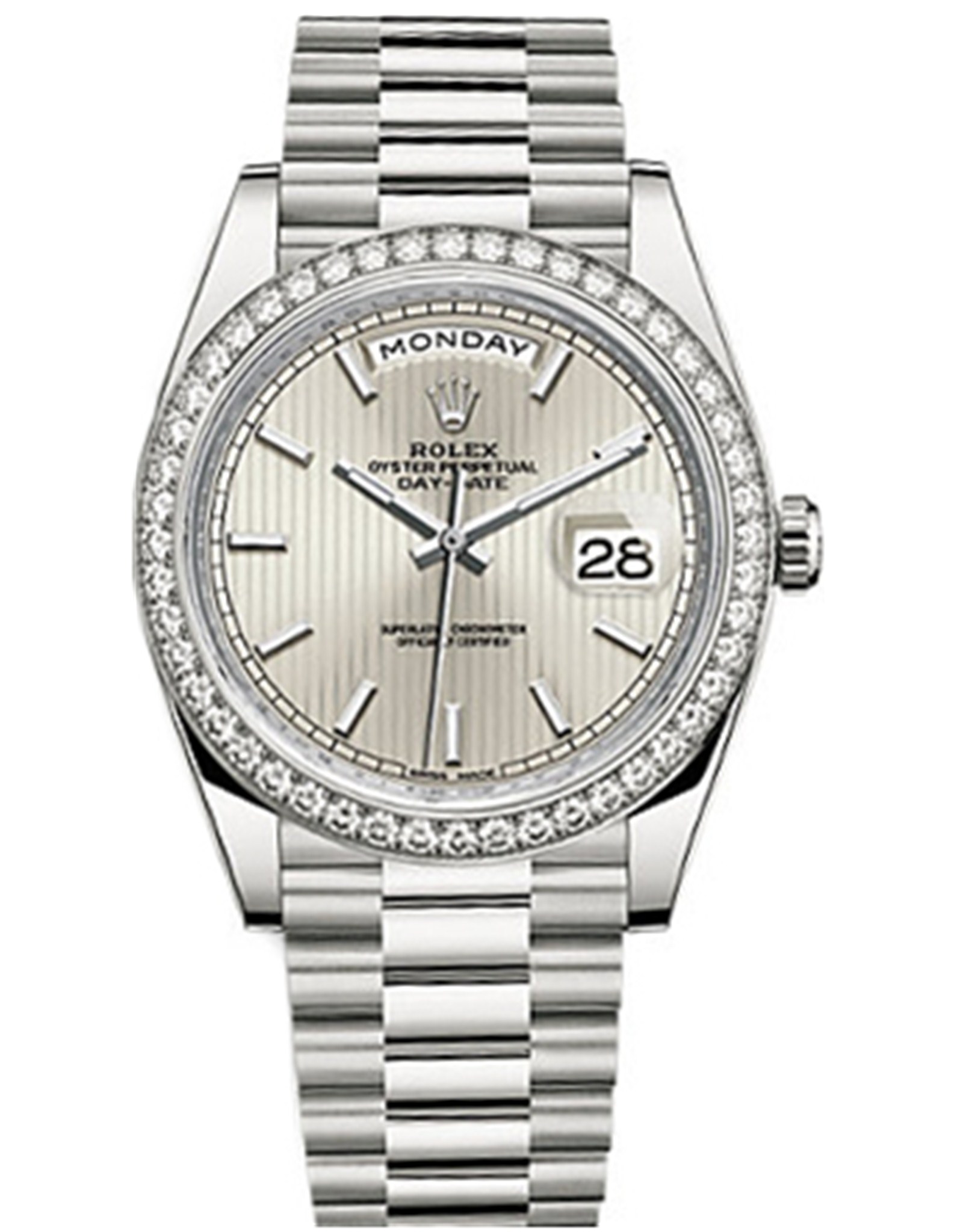 Replica Rolex Day Date Silver Dial with Stripe Motif 228349RBR 40MM