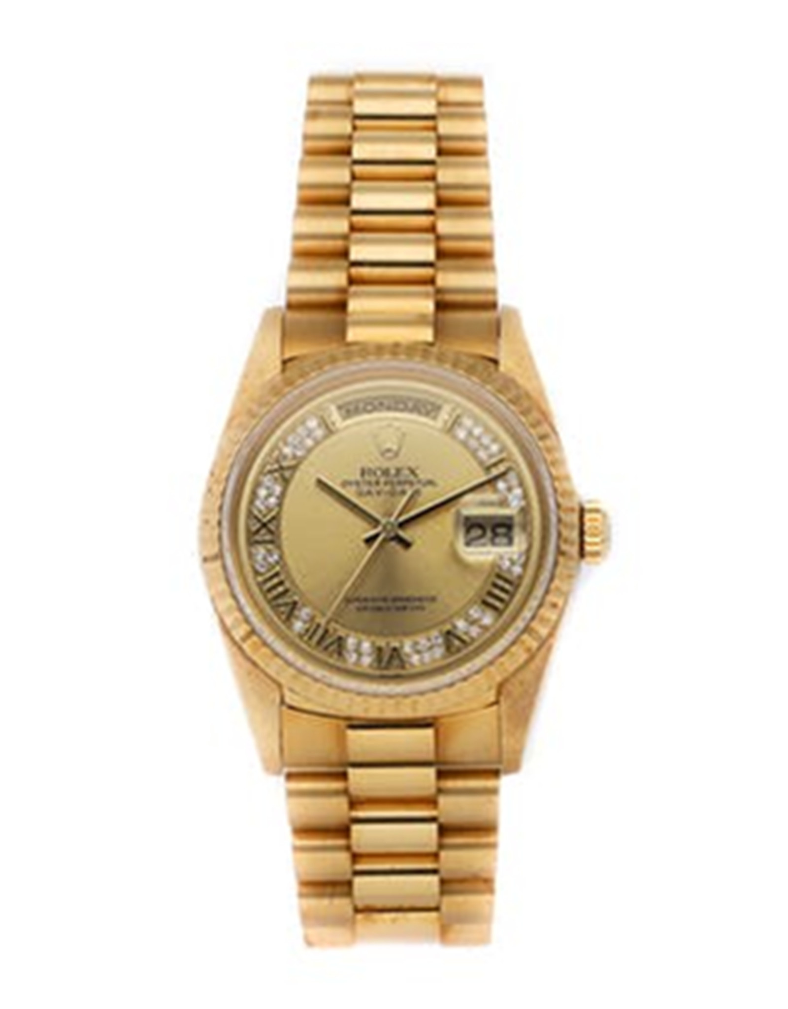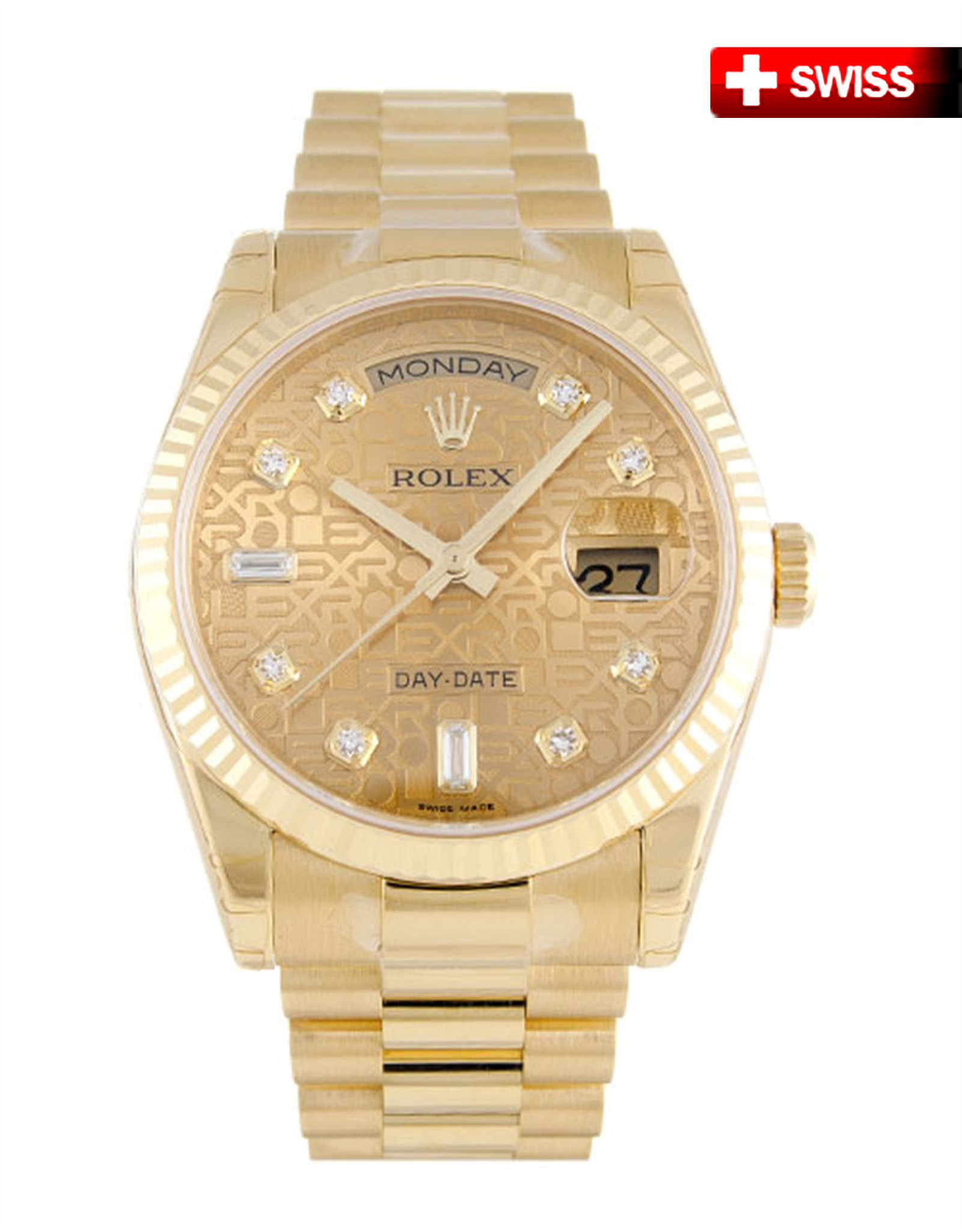 Replica Rolex Day Date Automatic watch Features Yellow Gold Case Champagne Diamond Dial 36 MM