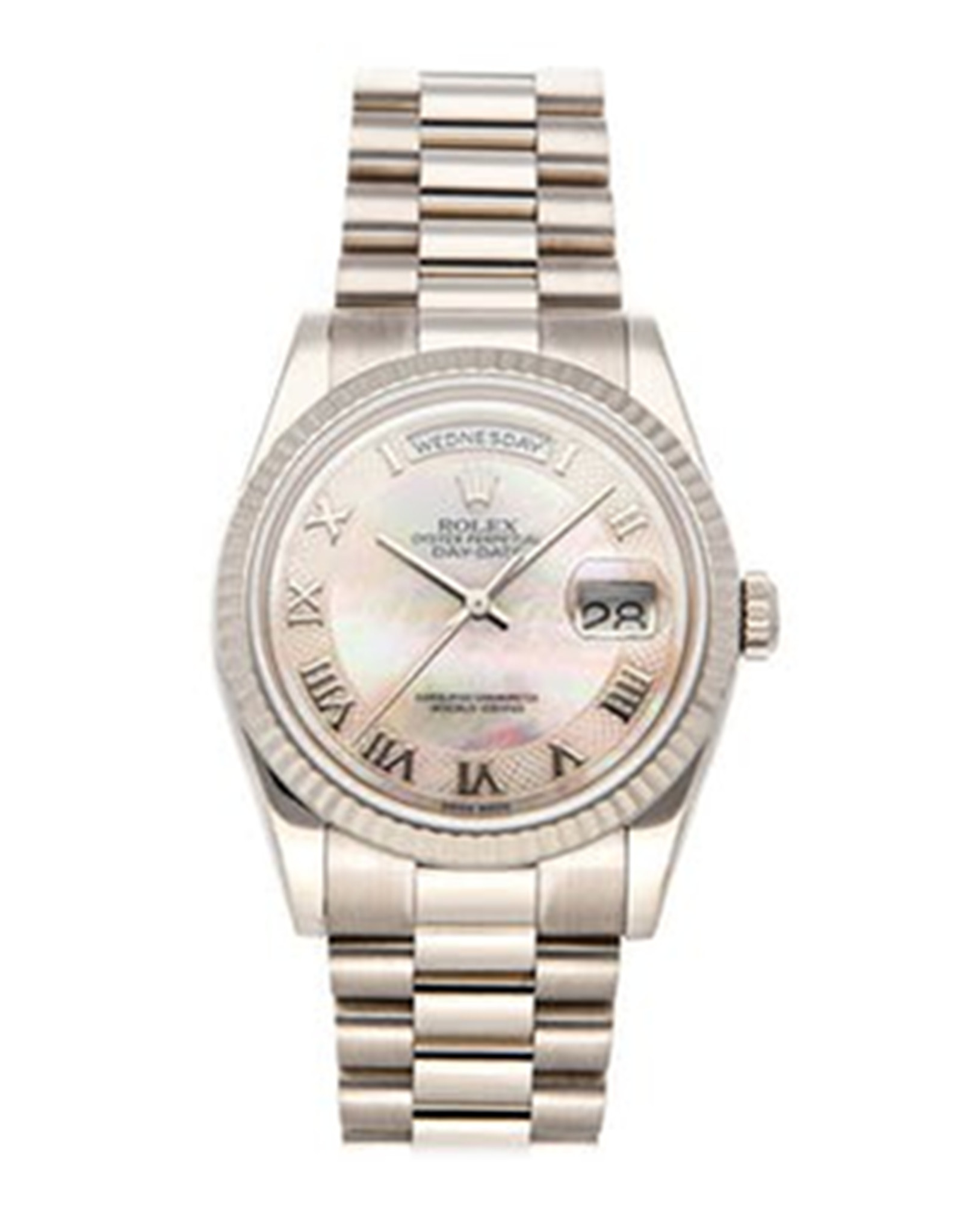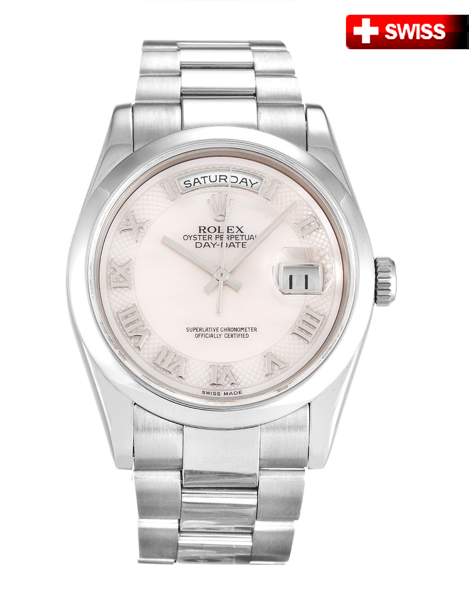 Replica Rolex Day Date White Gold Case Surrounding Pink Mother Pearl Dial 36 MM