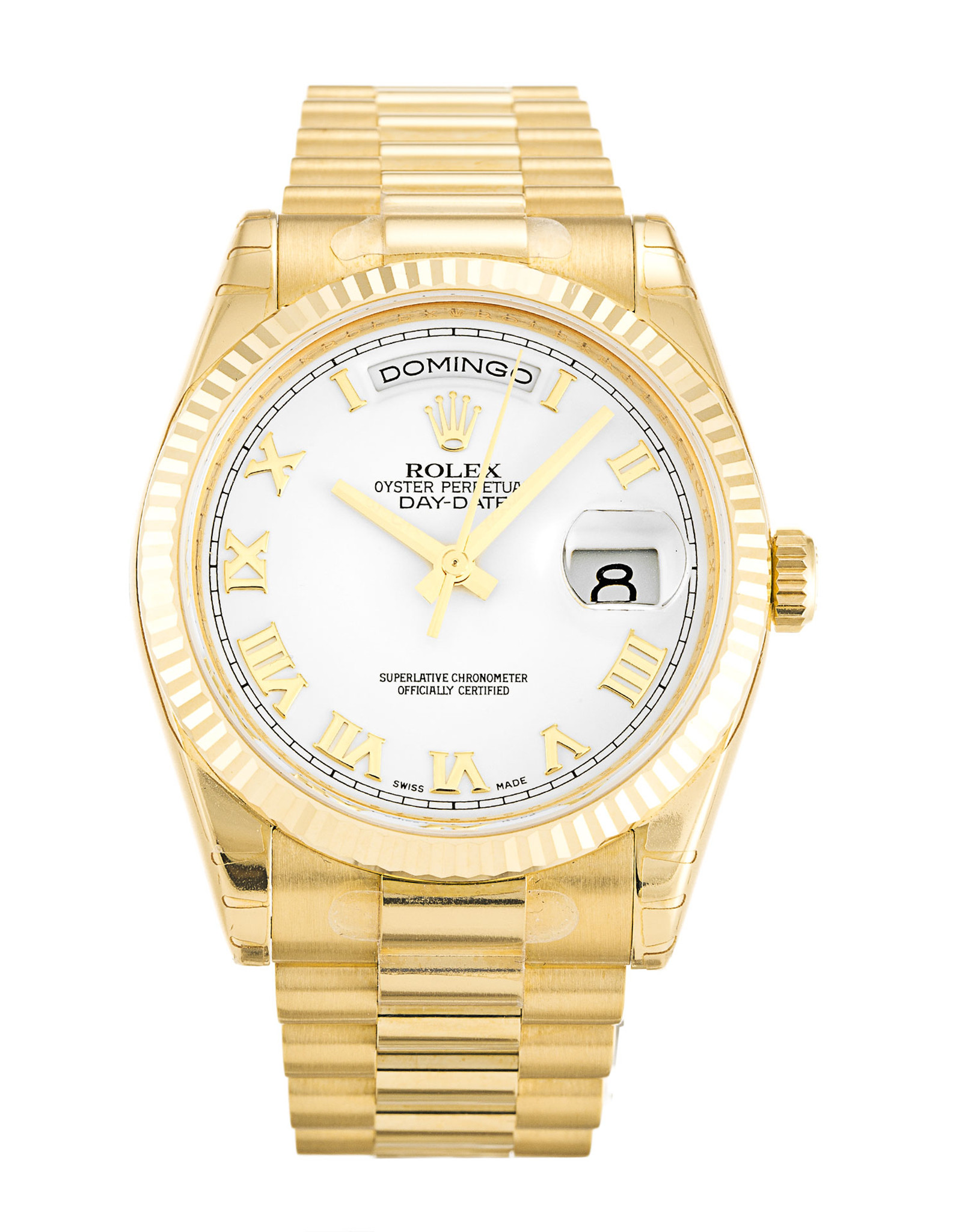 Replica Rolex Day Date Yellow Gold Case Roman Markers 118238 36MM