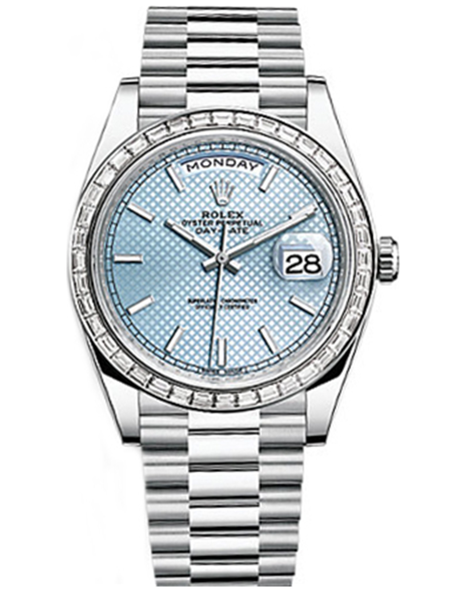 Replica Rolex Day Date Ice Blue Dial with Diagonal Motif Men’s Watch 228396TBR 40MM