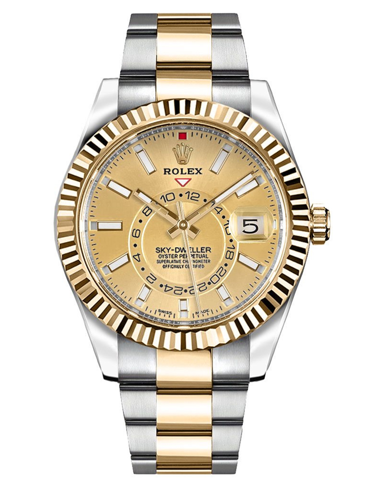 Replica Rolex Sky Dweller Yellow Gold Dial Number Markers 326938 42MM