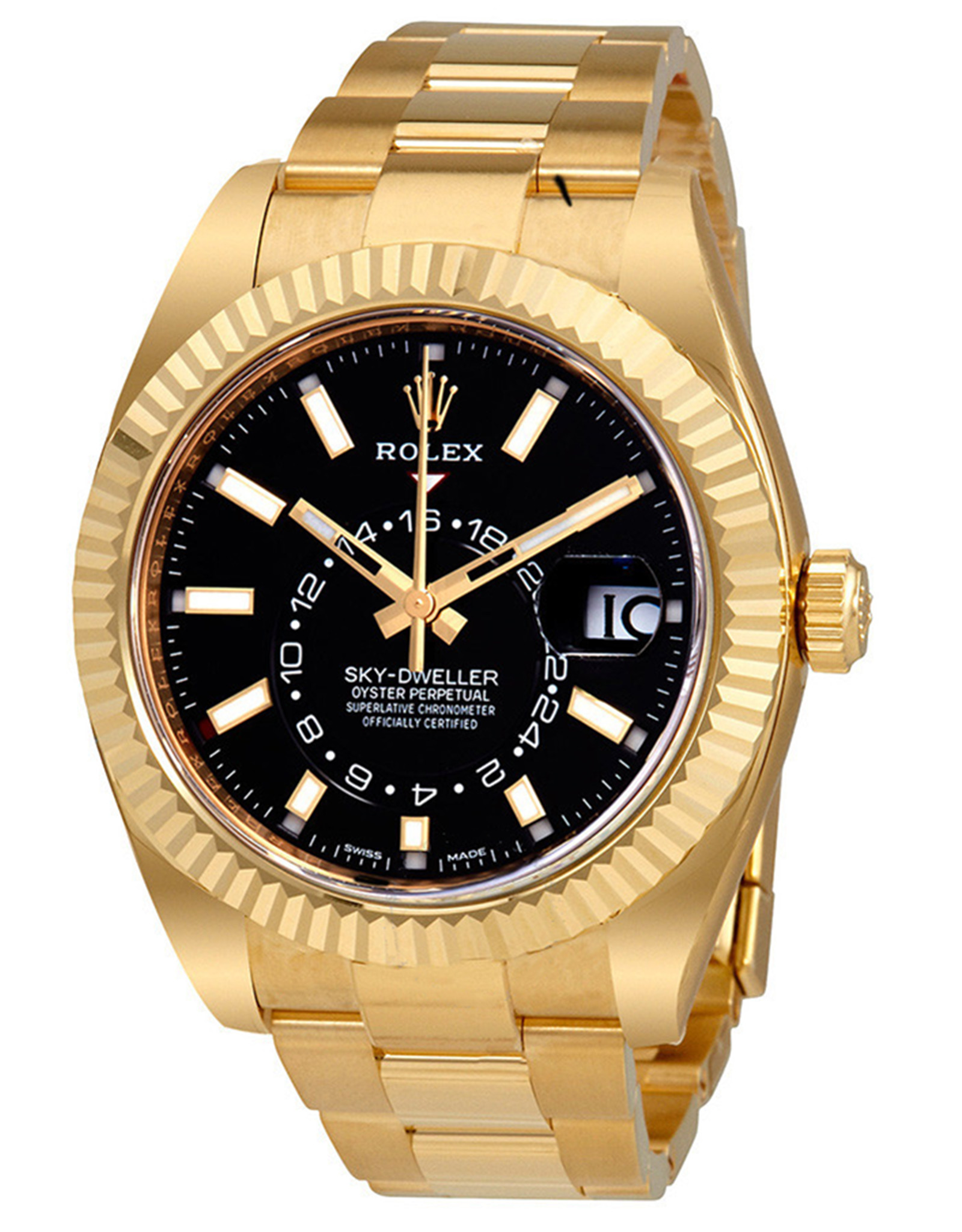Replica Rolex Sky Dweller Black Dial Automatic Men’s 18kt Yellow Gold Oyster Watch 326938CSO 42 MM