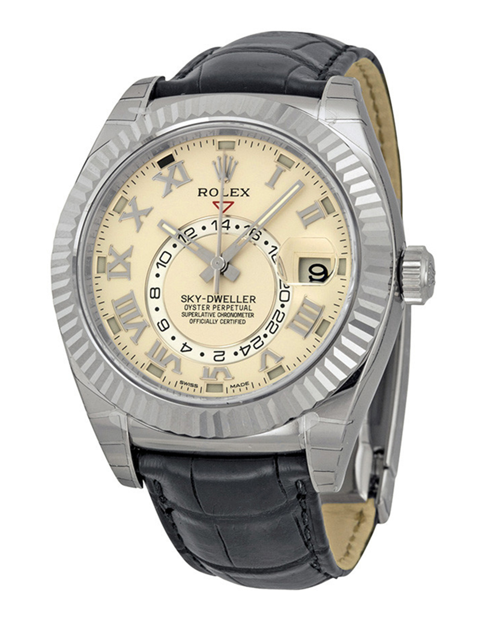 Replica Rolex Sky Dweller Automatic Ivory Dial Black Leather Men’s Watch 42 MM