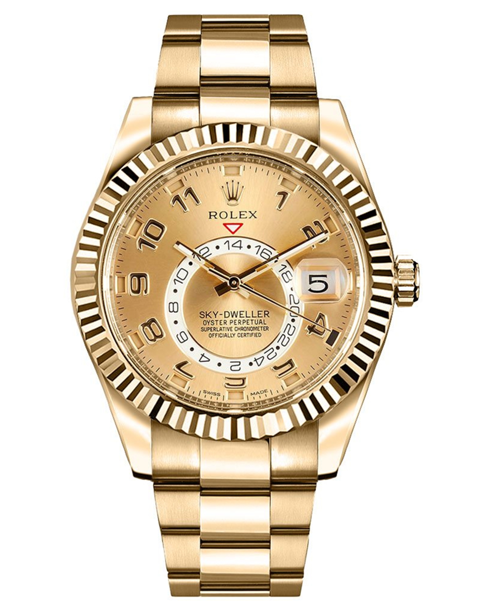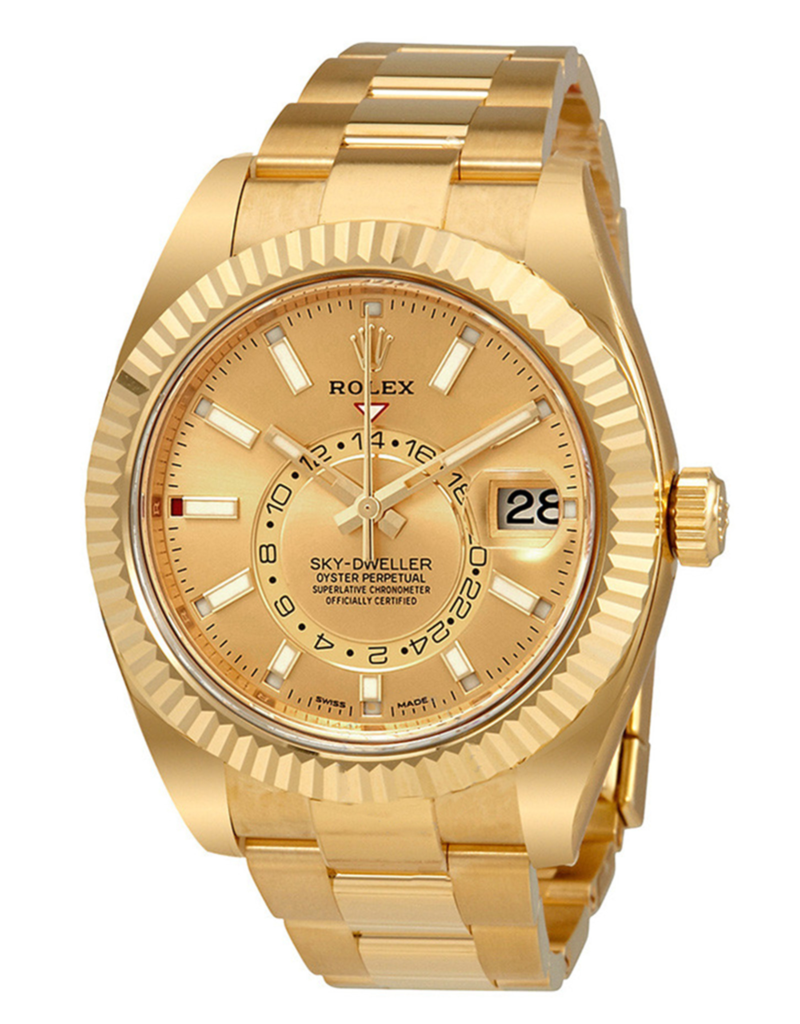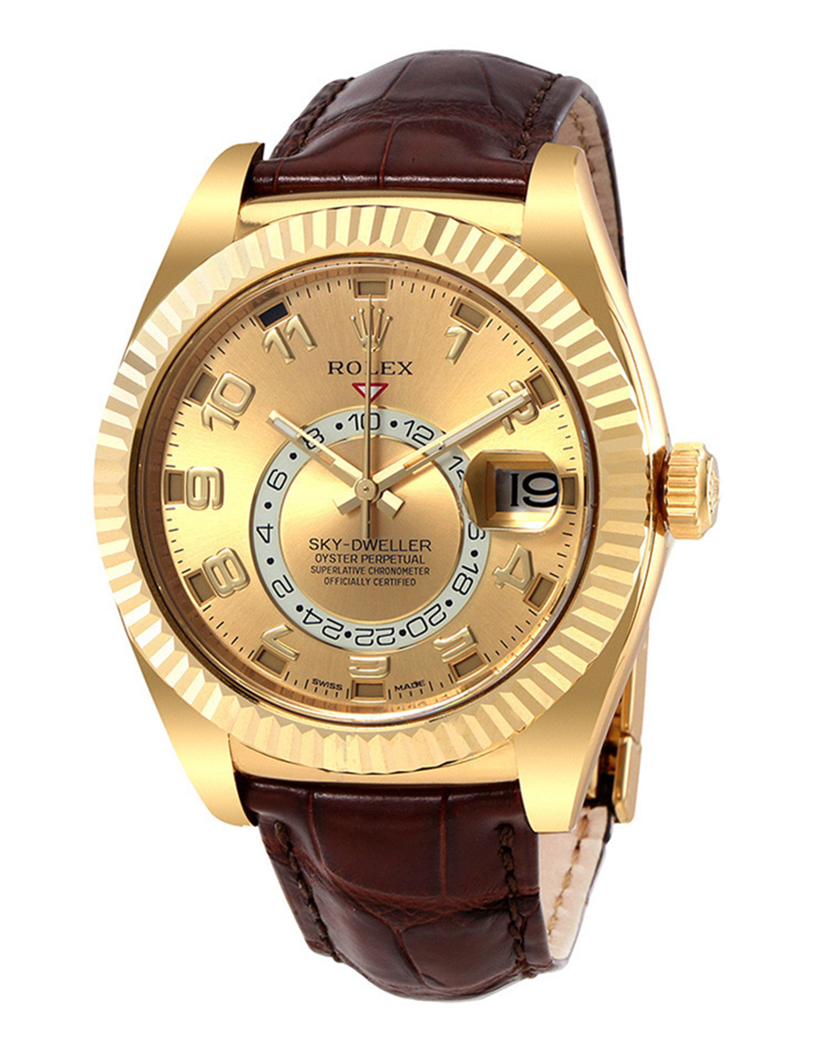 Replica Rolex Sky Dweller Champagne Dial Automatic Men’s 18kt Yellow Gold Oyster Watch 42 MM