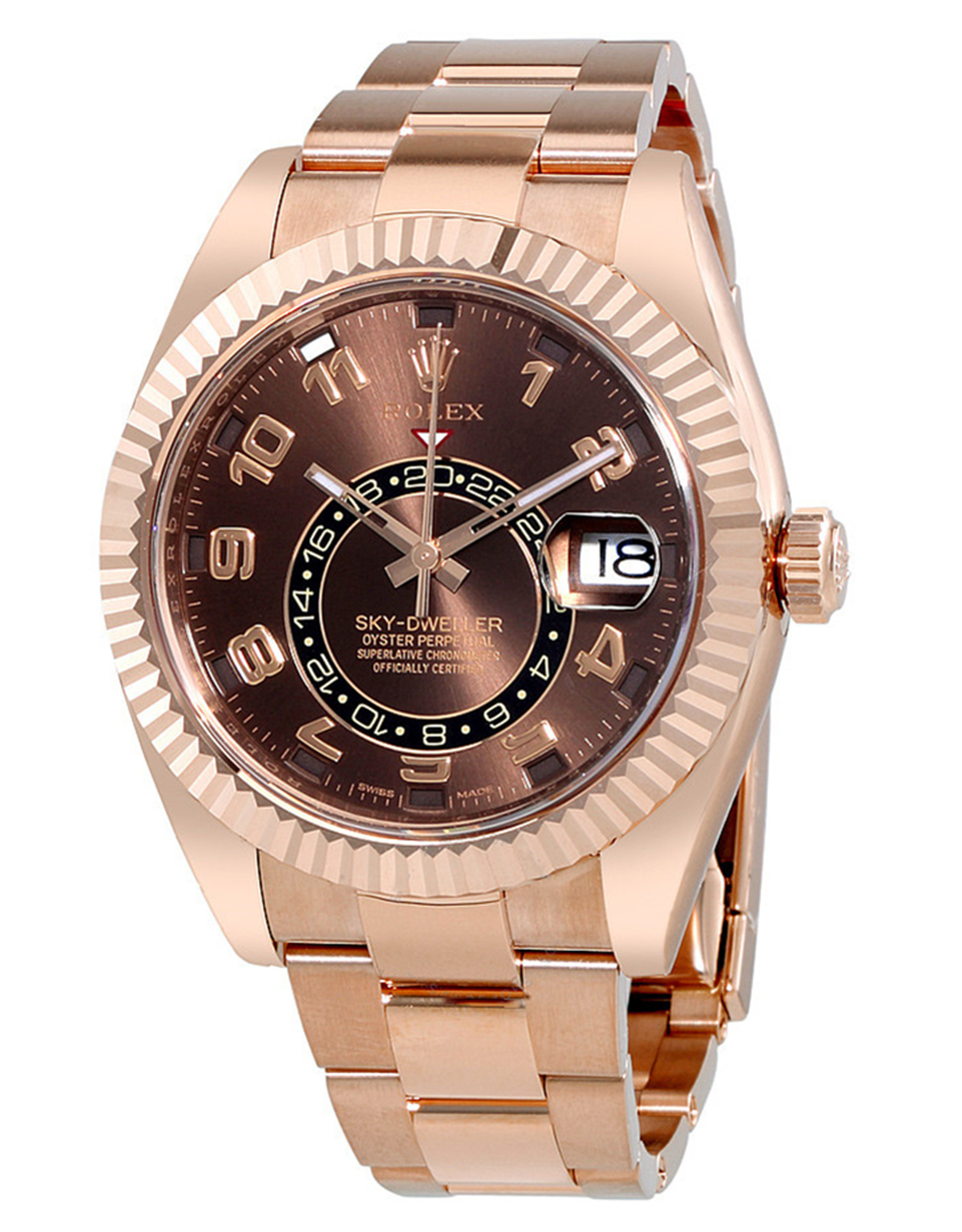 Replica Rolex Sky Dweller Chocolate Dial 18K Everose Gold Oyster Bracelet Automatic Men’s Watch 42 MM
