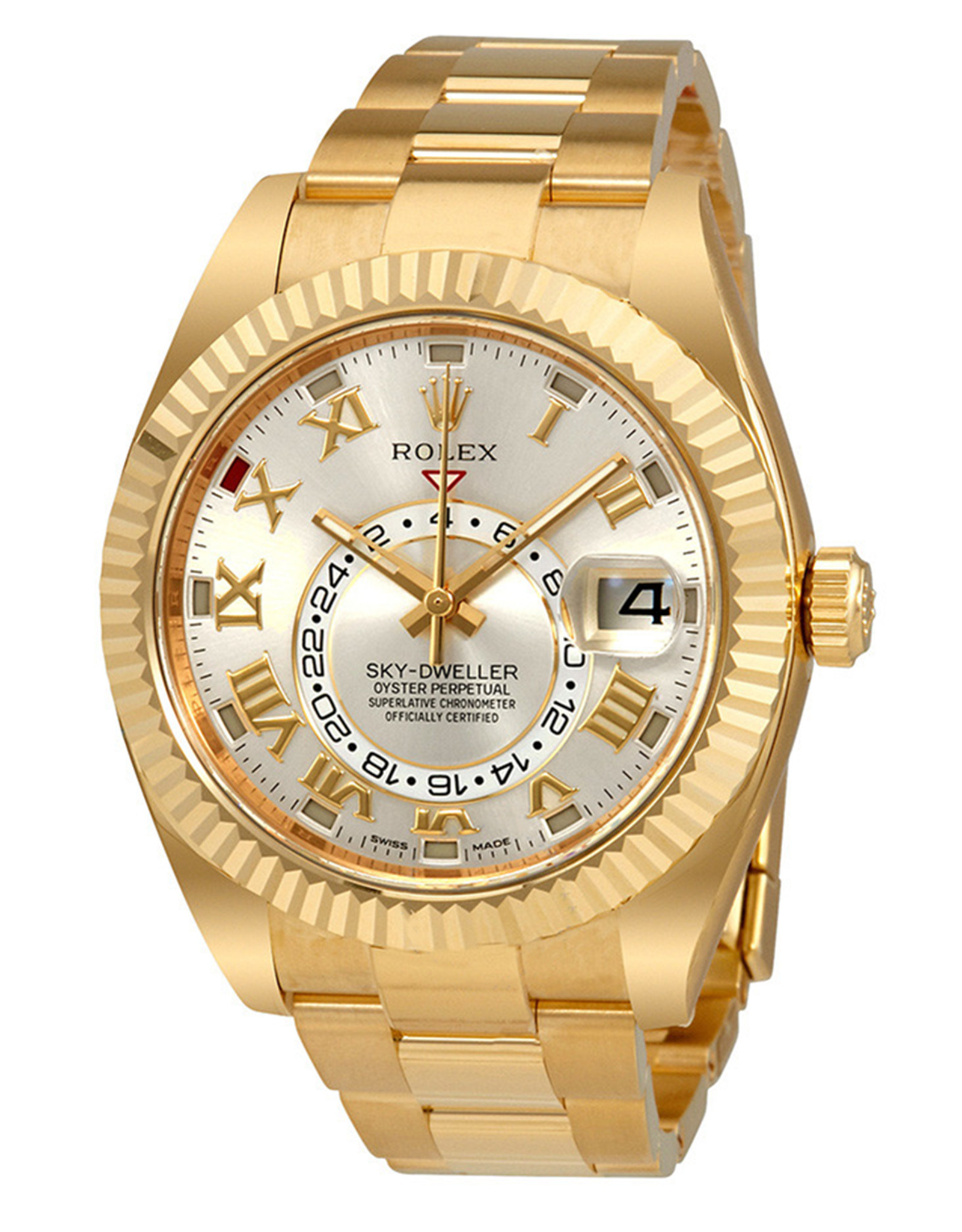 Replica Rolex Sky Dweller Silver Dial 18kt Yellow Gold Oyster Men’s Watch 42 MM