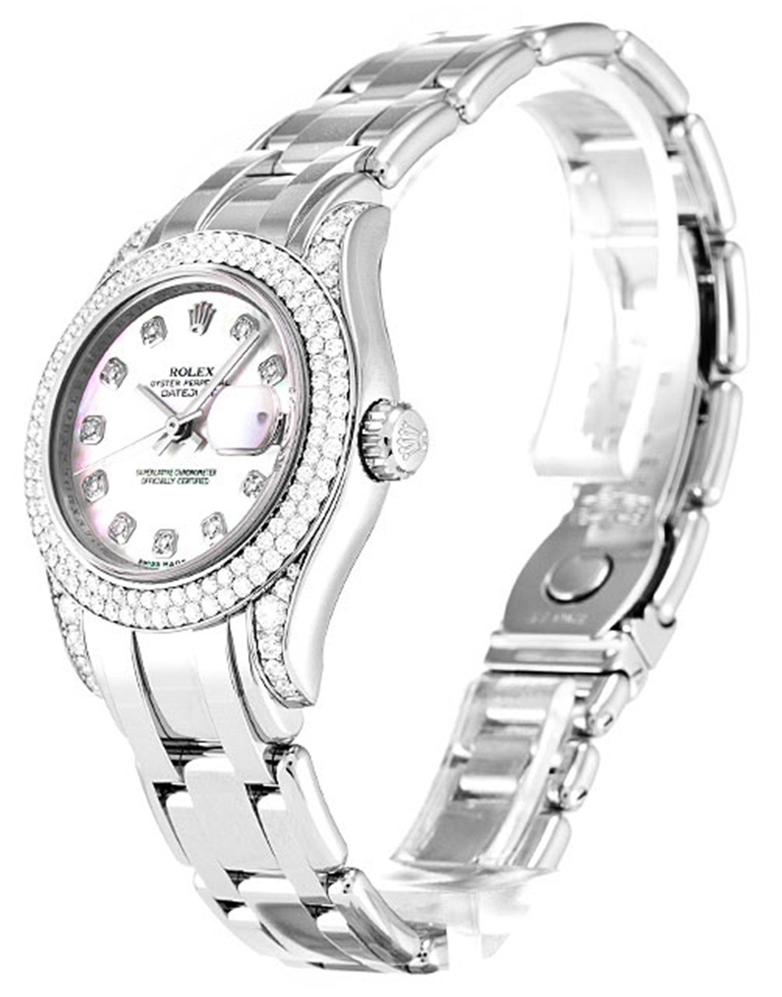 The replica Rolex Pearlmaster is stunning! Its white gold case and diamond markers add elegance. Perfect for ladies, but slightly heavier than expected. Ideal for special occasions!