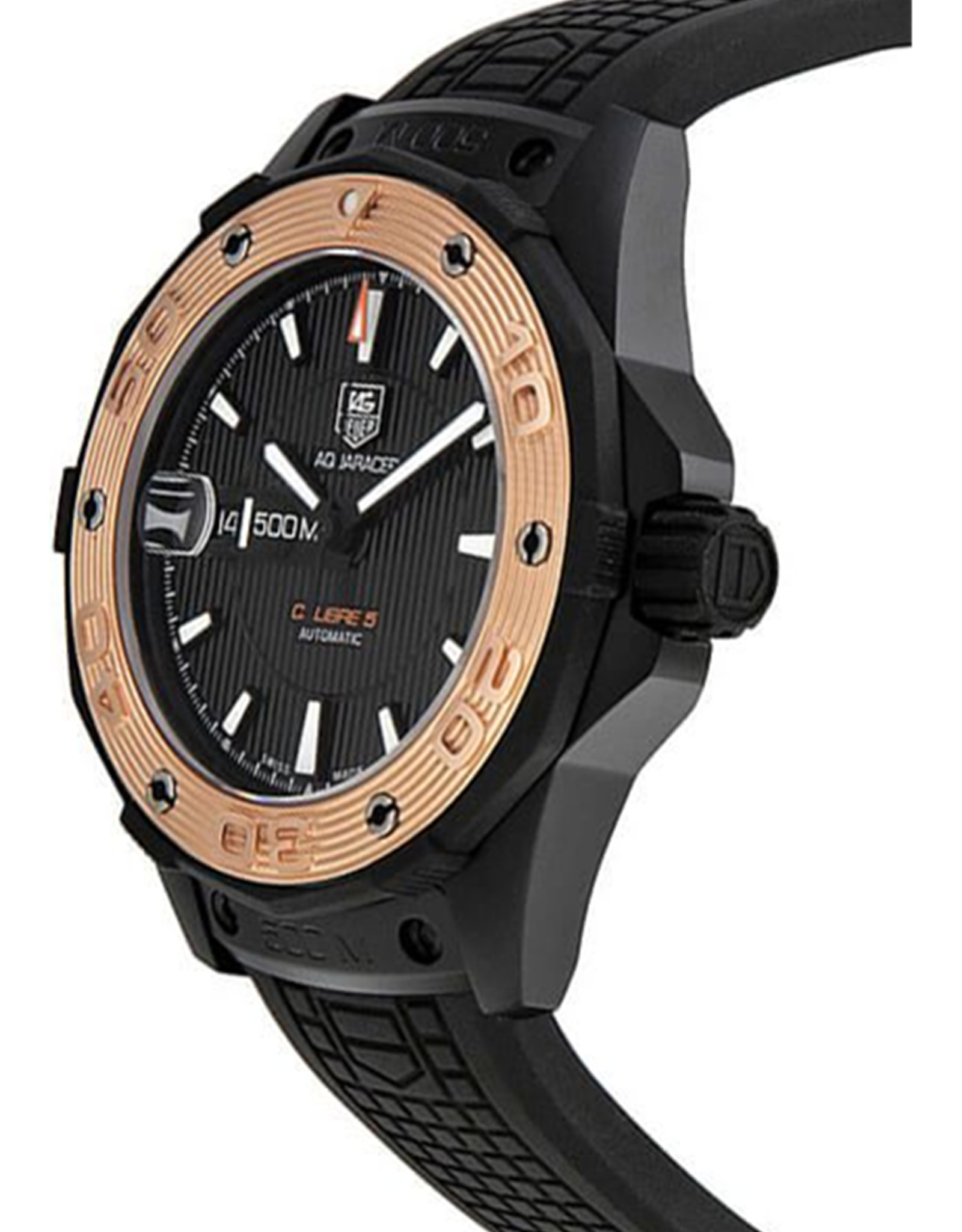 At the heart of this watch is an automatic movement, reflecting the craftsmanship and precision that Tag Heuer is famous for. The bold black baton dial provides excellent readability, complemented by a durable black rubber strap that embraces the wrist with both style and practicality. This replica model mirrors the original Tag Heuer Aquaracer 500m calibre 5 rubber strap edition, making it an excellent choice for enthusiasts looking for quality and elegance without compromise. Its water resistance features ensure that it performs excellently in diving and aquatic environments.